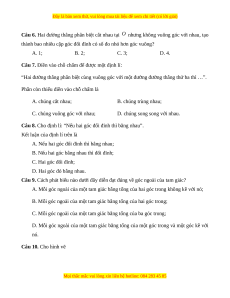 D. Mỗi góc ngoài của một tam giác bằng tổng của một góc trong và một góc kề với nó. Câu 10. Cho hình vẽ