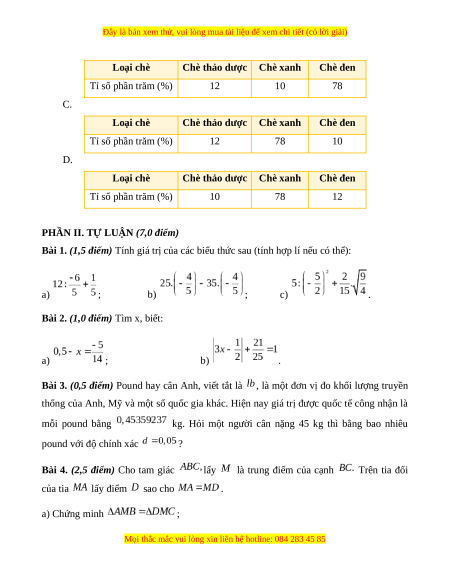 Đây là bản xem thử, vui lòng mua tài liệu để xem chi tiết (có lời giải)