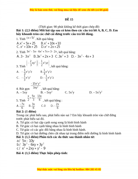 Đây là bản xem thử, vui lòng mua tài liệu để xem chi tiết (có lời giải)