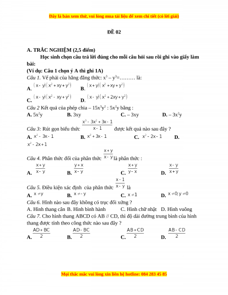Đây là bản xem thử, vui lòng mua tài liệu để xem chi tiết (có lời giải)