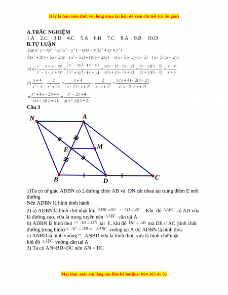 A.TRẮC NGHIỆM 1.A 2.C 3.D 4.C 5.A 6.B 7.C 8.A 9.B 10.D B.TỰ LUẬN Câu 3 N A M E B D C