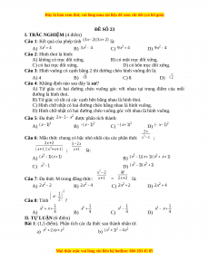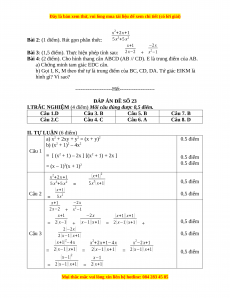 Câu 7: Đa thức M trong đẳng thức: x+1 = 2 x+2 là: A) B) C) D) Câu 8: Tính ? A) B) C) D)