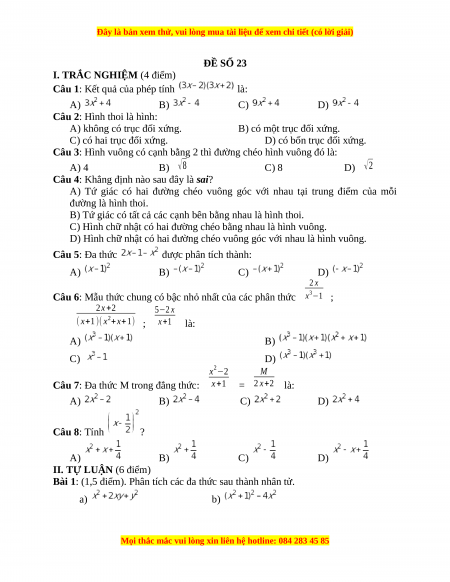 Đây là bản xem thử, vui lòng mua tài liệu để xem chi tiết (có lời giải)