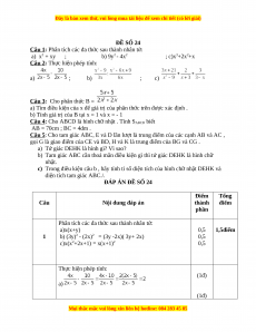 c) Trong điều kiện câu b , hãy tính tỉ số diện tích của hình chữ nhật DEHK và diện tích tam giác ABC./. ĐÁP ÁN ĐỀ SỐ 24 Điểm Tổng Câu Nội dung đáp án thành điểm phần