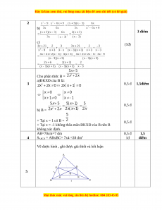 + Tại x = -1 không thõa mãn ĐKXĐ của B nên B không xác định. AB=70cm=7 dm 0,5 đ 1,5 4 SABCD = ABxBC= 7x4 =28 dm2 1đ điểm