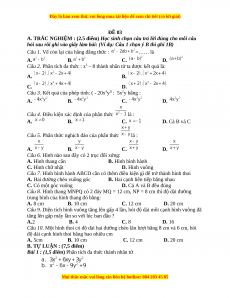 Đề thi cuối học kì 1 Toán 8 năm 2022 - 2023 - Đề 3