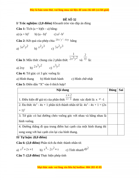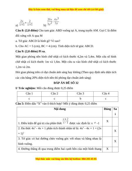 Đây là bản xem thử, vui lòng mua tài liệu để xem chi tiết (có lời giải)