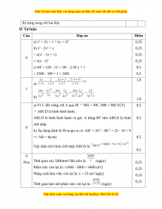 c) 492 = (50 - 1)2 = 502 - 2.50.1 + 1 0,5 = 2500 - 100 + 1 = 2401 0,5 1,0 a) 7 b) 1,0