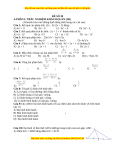 Câu 1: Kết quả của phép tính (2x - 3) (2x + 3) bằng : A) 4x2 + 9 B) 4x2 - 9 C) 9x2 + 4 D) 9x2 - 4