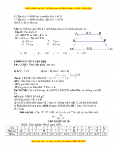 d) Tính diện tích tam giác ADH, tứ giác ABKH biết AB = 6cm, AH 4 cm và DH=3cm Bài 4 (0,5đ) : Cho