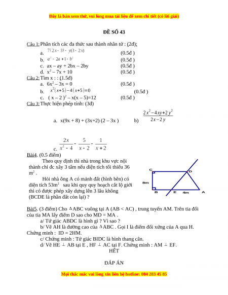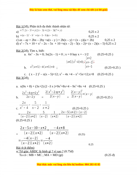 Đây là bản xem thử, vui lòng mua tài liệu để xem chi tiết (có lời giải)