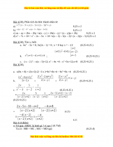 c. ( x – 2 )2 – x(x – 5)=12; x2 – 4x +4 – x2 +5x=12;x=8 (0.25+0.25 ) Bài 3(2đ):