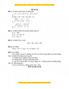 c) x2 – 6x + 5 = x2 – x – 5x + 5 = x(x – 1) – 5(x – 1) = (x – 1)(x – 5) (0,5đ) Bài 3: Tìm x (3x + 1)2 = (4x – 2)2 (3x + 1)2 – (4x – 2)2 = 0