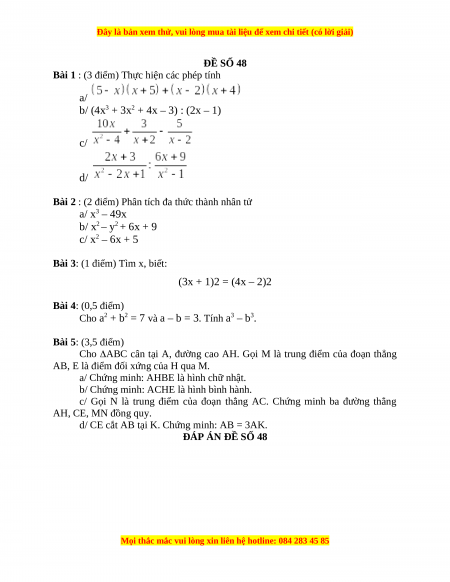 Đây là bản xem thử, vui lòng mua tài liệu để xem chi tiết (có lời giải)