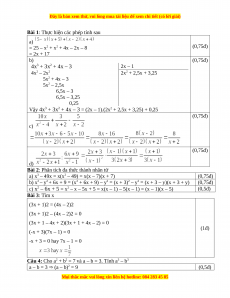 Vậy 4x3 + 3x2 + 4x – 3 = (2x – 1).(2x2 + 2,5x + 3,25) + 0,25 (0,75đ) c) (0,75đ) d)