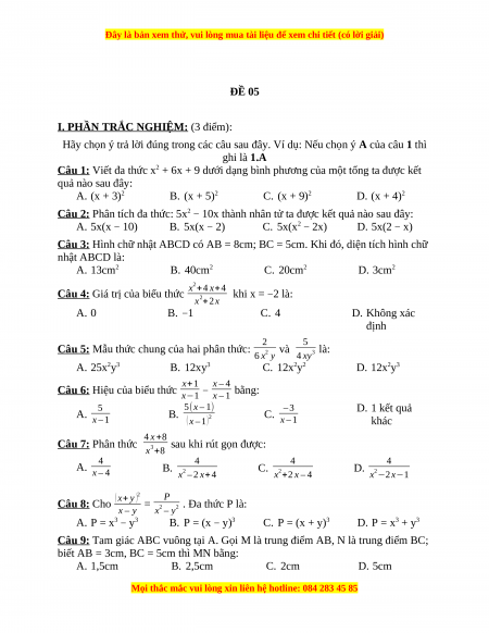 Đây là bản xem thử, vui lòng mua tài liệu để xem chi tiết (có lời giải)