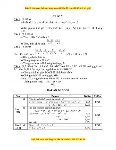 ĐỀ SỐ 51