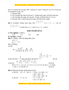ĐÁP ÁN ĐỀ SỐ 52