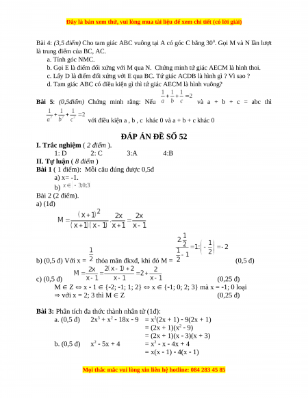 Đây là bản xem thử, vui lòng mua tài liệu để xem chi tiết (có lời giải)