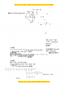 Bài 4: Vẽ hình đúng 0,25đ E // N // B / 30 / 0 C M I D MN // AB ME BECM là hình thoi (0.5đ) c) (1đ)