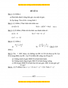 Đề thi cuối học kì 1 Toán 8 năm 2022 - 2023 - Đề 55