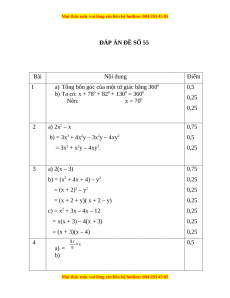 ĐÁP ÁN ĐỀ SỐ 55 Bài Nội dung Điểm 1