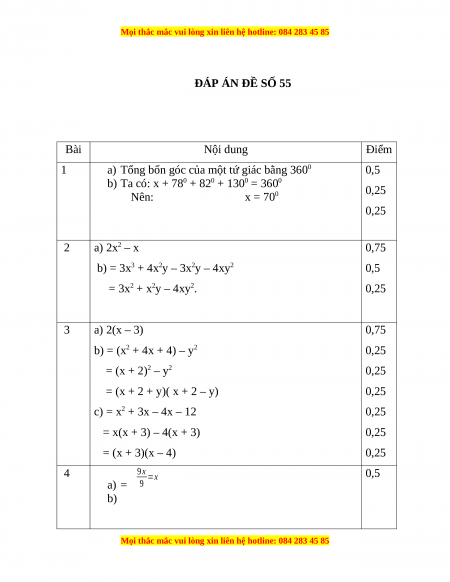 ĐÁP ÁN ĐỀ SỐ 55