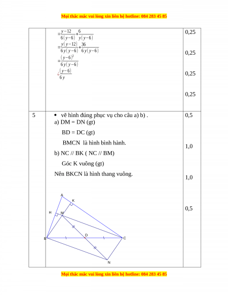 Nên BKCN là hình thang vuông. 1,0 A K 0,5 H M D B C N