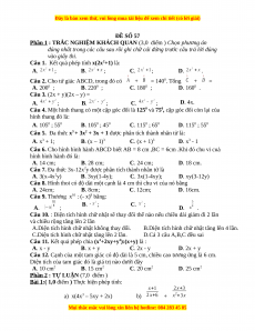 Đề thi cuối học kì 1 Toán 8 năm 2022 - 2023 - Đề 57