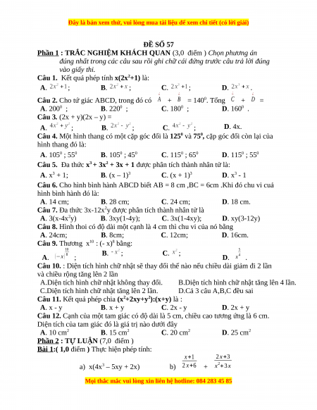 Đây là bản xem thử, vui lòng mua tài liệu để xem chi tiết (có lời giải)