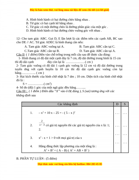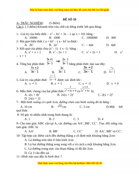 Đây là bản xem thử, vui lòng mua tài liệu để xem chi tiết (có lời giải)