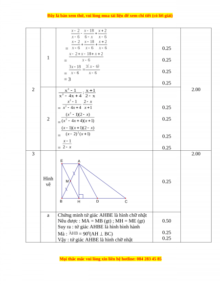 = (x 4x ) 4 (x ) 1 (x ) 1 (x ) 1 (2 x) 2 = (x ) 2 (x ) 1 0.25 x 1 = 2 x 0.25 3 2.00 E A Hình M 0.25 vẽ B H D C a
