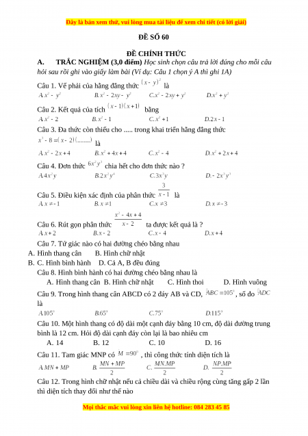 ĐỀ SỐ 60 ĐỀ CHÍNH THỨC A.