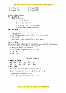 b) EM là đường trung bình của tam giác ABF c) DE = BF d) NE // MF ĐÁP ÁN ĐỀ SỐ 60 A. TRẮC NGHIỆM B. TỰ LUẬN