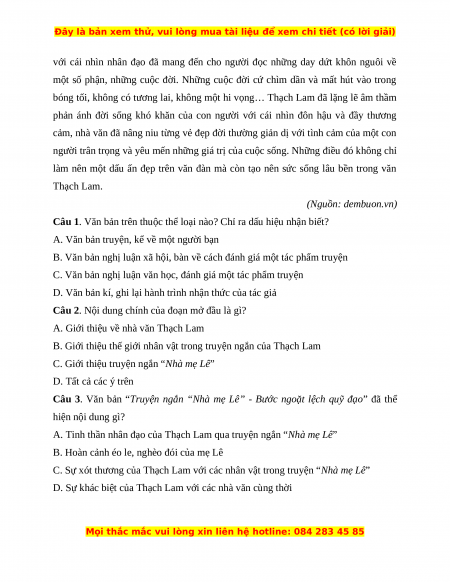 Đây là bản xem thử, vui lòng mua tài liệu để xem chi tiết (có lời giải)