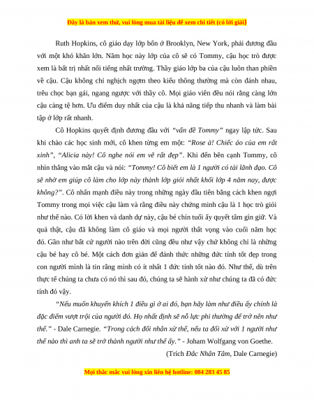 nhìn thẳng vào mắt cậu và nói: “Tommy! Cô biết em là 1 người có tài lãnh đạo. Cô