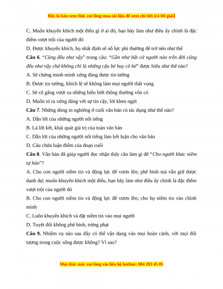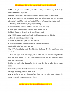 Câu 7 C. Dẫn lời của những người nổi tiếng làm kết luận cho văn bản 0,5 điểm