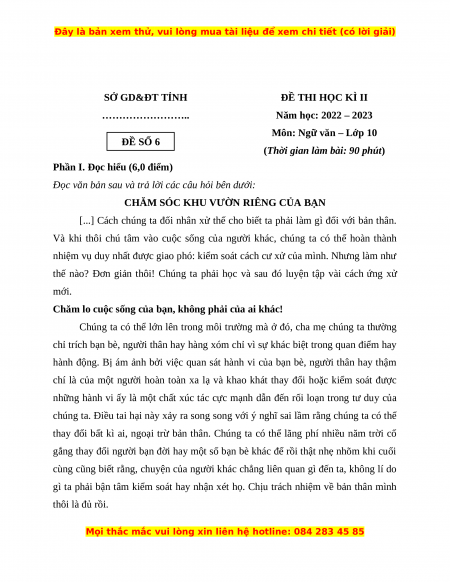Môn: Ngữ văn – Lớp 10 ĐỀ SỐ 6