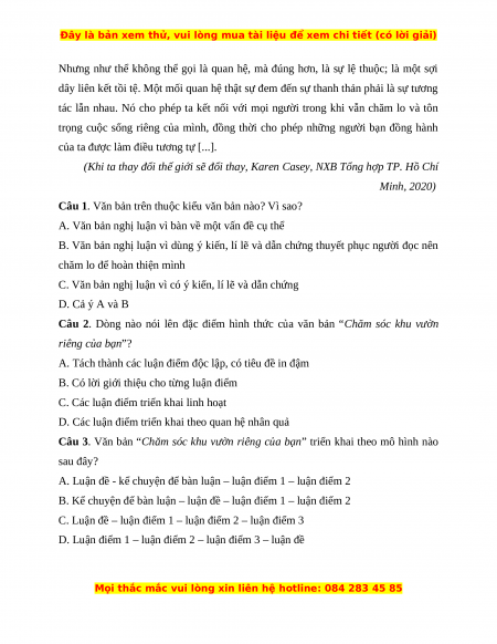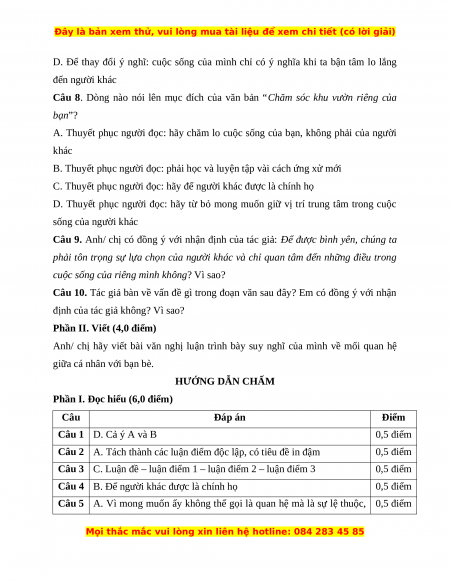 Câu 8. Dòng nào nói lên mục đích của văn bản “Chăm sóc khu vườn riêng của