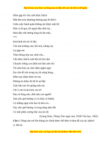 Câu 2. Đối tượng trữ tình của bài thơ trên là? A. Mẹ tôi B. Cô bé nhà bên C. Quê hương D. Tác giả