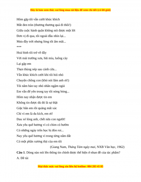 Đây là bản xem thử, vui lòng mua tài liệu để xem chi tiết (có lời giải)