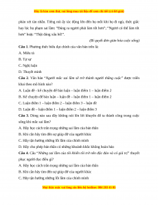 Câu 1. Phương thức biểu đạt chính của văn bản trên là: A. Miêu tả B. Tự sự C. Nghị luận D. Thuyết minh