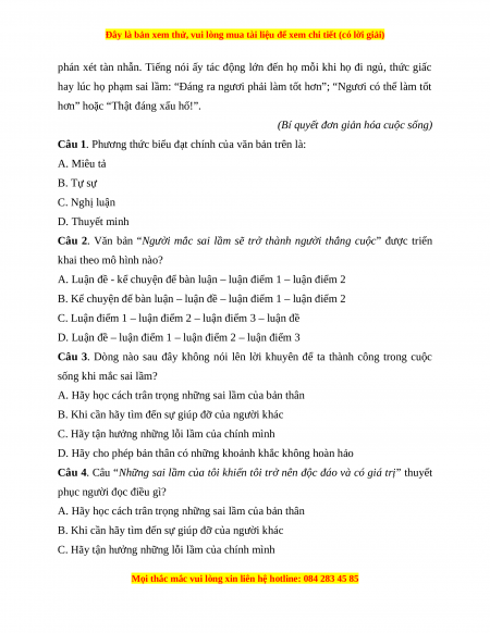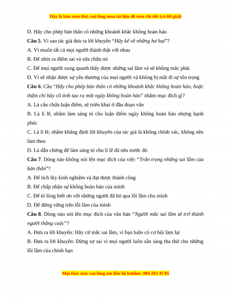 Câu 8. Dòng nào nói lên mục đích của văn bản “Người mắc sai lầm sẽ trở thành