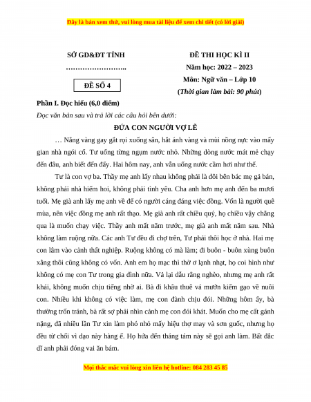 Môn: Ngữ văn – Lớp 10 ĐỀ SỐ 4