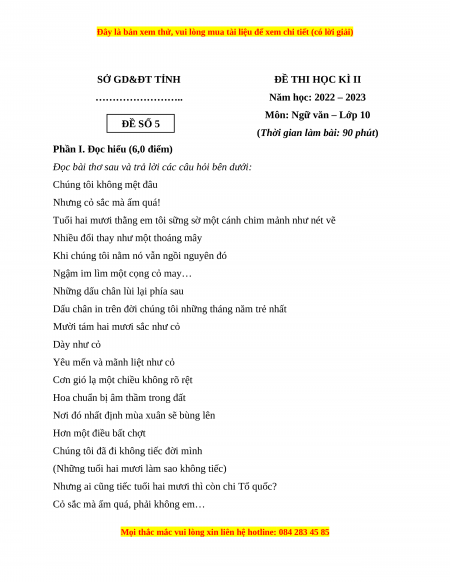 Môn: Ngữ văn – Lớp 10 ĐỀ SỐ 5
