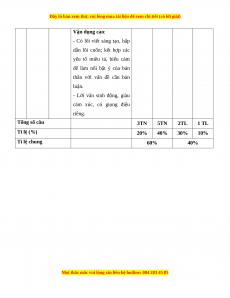 cảm xúc, có giọng điệu riêng. Tổng số câu 3TN 5TN 2TL 1 TL Tỉ lệ (%) 20% 40% 30% 10% Tỉ lệ chung 60% 40%