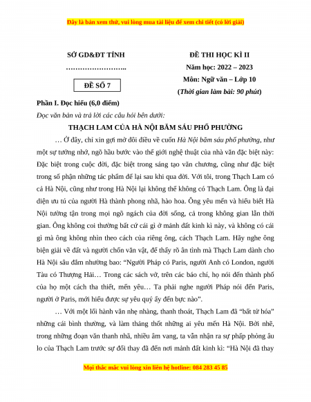 Môn: Ngữ văn – Lớp 10 ĐỀ SỐ 7