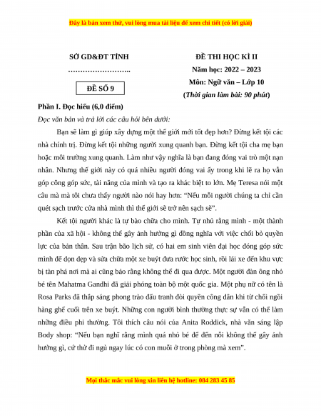 Môn: Ngữ văn – Lớp 10 ĐỀ SỐ 9