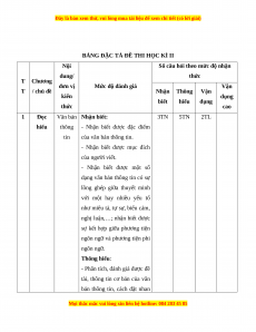 BẢNG ĐẶC TẢ ĐỀ THI HỌC KÌ II