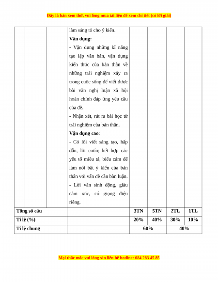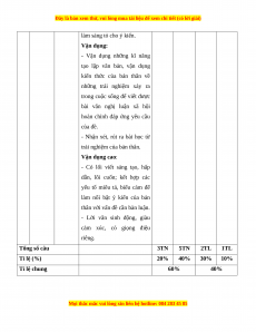 cảm xúc, có giọng điệu riêng. Tổng số câu 3TN 5TN 2TL 1TL Tỉ lệ (%) 20% 40% 30% 10% Tỉ lệ chung 60% 40%